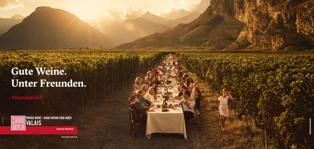 «Ein Gut ist nur erfreulich, wenn man es teilt.» Davon war bereits Seneca überzeugt. Die neue Kampagne von Vins du Valais mit dem Titel «Tavolata» folgt dieser Philosophie und dem aktuellen Aufschwung des Weintourismus. «Tavolata» heisst auf Italienisch wörtlich «Tafelrunde». Bei einer solchen versammelt man sich als Familie oder unter Freunden an einem sehr langen Tisch, um gemeinsam zu essen. Schlicht, verbindend und festlich – das Prinzip der Tavolata spricht jeden unmittelbar an und ist im Wallis sehr beliebt.