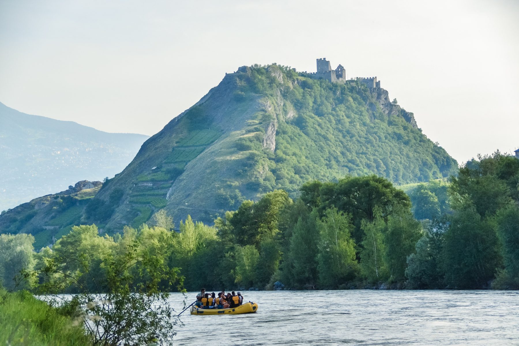 An unforgettable experience to do with family or friends at the end of the day. Imaginate you, a glass of wine in the hand, in the middle of the Rhône looking to the beautiful castle of Tourbillon and to the vineyards around, going through the city of Sion listen to the explanations of the passionate oenologist Christophe Morand from the Bruniere cellar with delicious traditional dishes. All your sens will be happy.