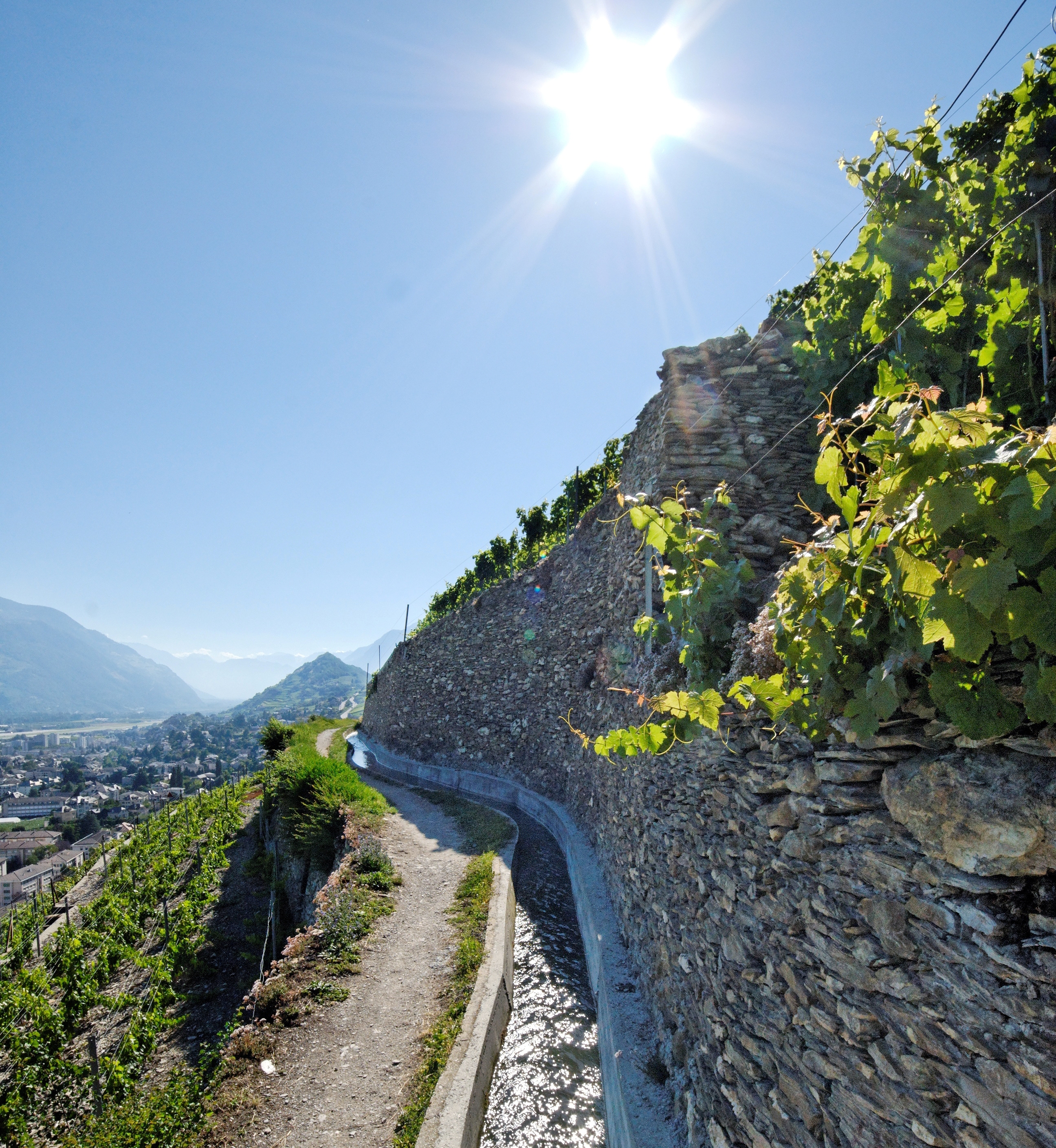 Built in 1453 by the Vénérable Chapitre de la Cathédrale de Sion to irrigate the vines belonging to the communes of Ayent, Grimisuat and Sion: its source is in the wild gorges of the Lienne and it empties below, in the Sionne, from the heights above the town of Sion.