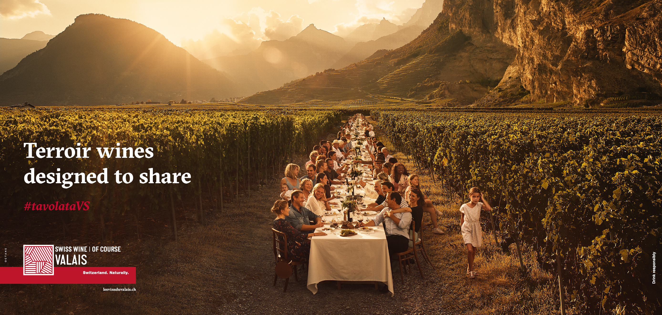 “A good is only pleasant if you share it,” Seneca said. The new campaign for Swiss Wine Valais, called “Tavolata”, is in line with this philosophy and the current momentum of wine tourism. Tavolata literally means “the table” in Italian. This practice consists of gathering with family or friends around a very long table in order to enjoy a meal together. Simple, unifying and festive, the principle of the tavolata has a universal scope, as well as a strong resonance in Valais.